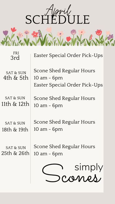 Please see below for the Scone Shed Schedules. Scroll through to see multiple months.