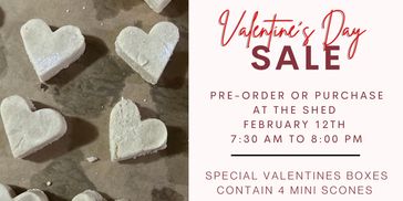 Click below to pre-order from this weeks menu by noon on Friday to guarantee your scones for pick-up during scone shed hours!